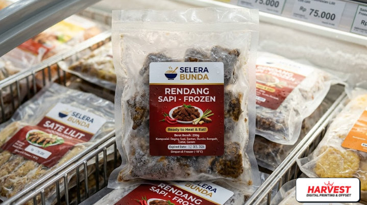 Sedang mencari stiker yang bagus untuk label frozen food? Sebagai percetakan andalan, Printingharvest.com menyarankan untuk pilih jenis stiker vinyl. Ini adalah salah satu pilihan bahan stiker terbaik yang bisa Anda gunakan untuk cetak stiker frozen food atau label makanan beku agar tampilan produk terlihat lebih profesional.